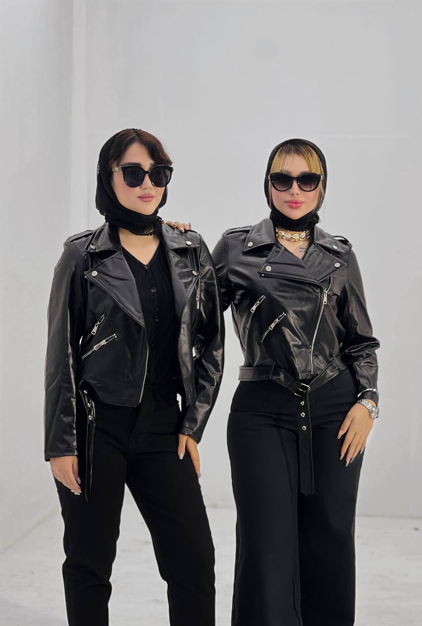 کت چرم کمربندی دو زیپ